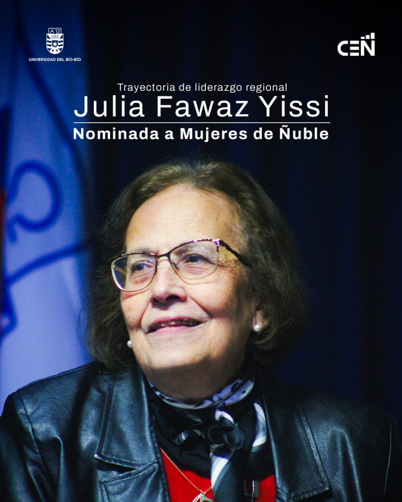 La nominación de Julia Fawaz Yissi a los premios anuales Mujeres de Ñuble @mujeresdenuble constituye un reconocimiento profundamente merecido a una trayectoria marcada por el compromiso, la sensibilidad social y la dedicación a los territorios y comunidades que dan identidad a nuestra región. Su labor, desarrollada en la Universidad del Bío-Bío, ha contribuido de manera decisiva a […]